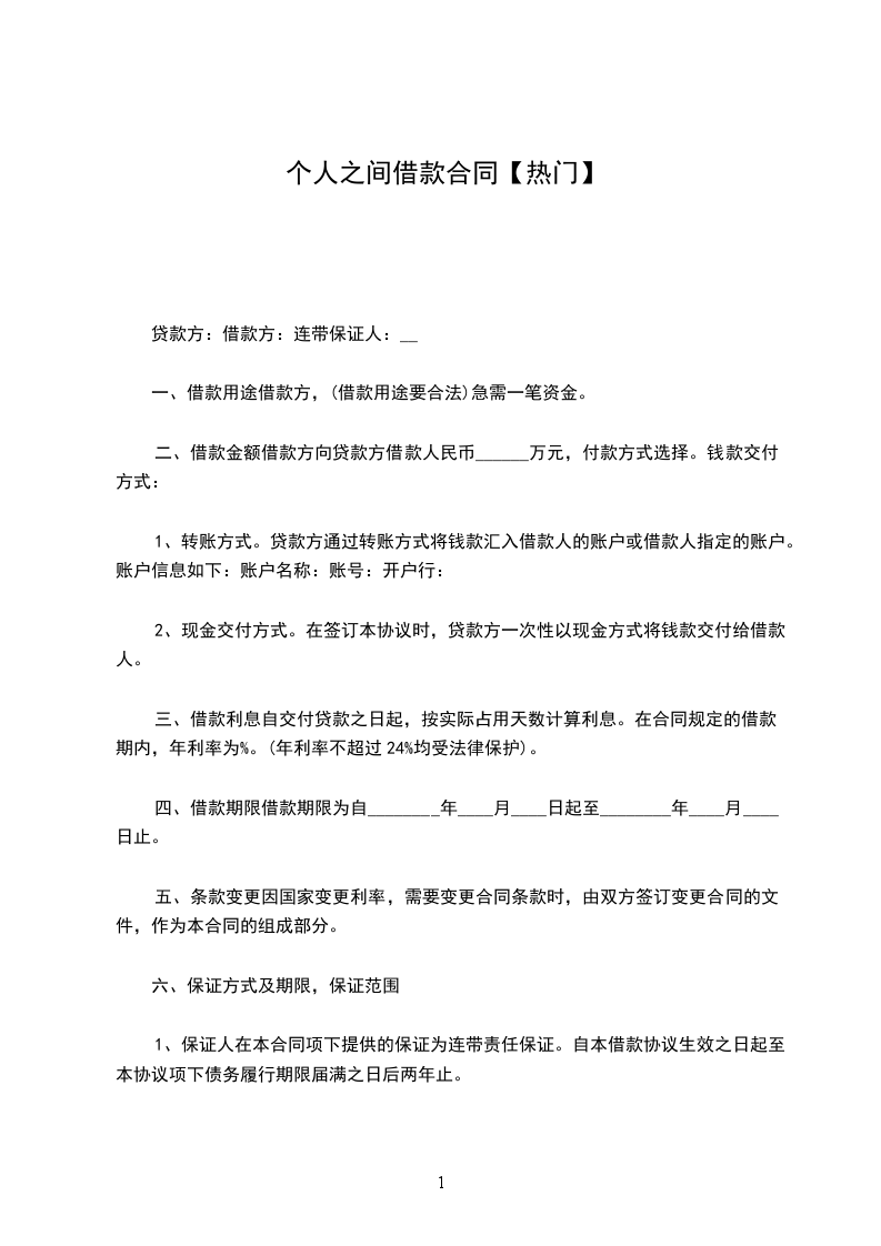 1、________年____月____日经双方协商乙方向甲方借到现金 (人民币) 万 仟(小写: )。