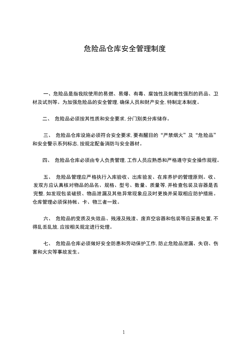 一、危险品是指我院使用的易燃、易爆、有毒、腐蚀性及刺激性强烈的药品、卫材及试剂等。为加强危险品的安全管理,确保人员和财产安全,特制定本制度。