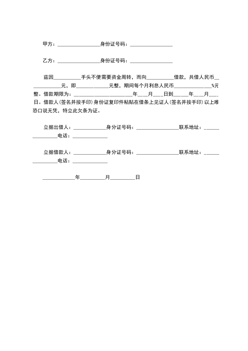 一、甲方向乙方借款人民币(大写)_________________,规定用于_________________________________________________。