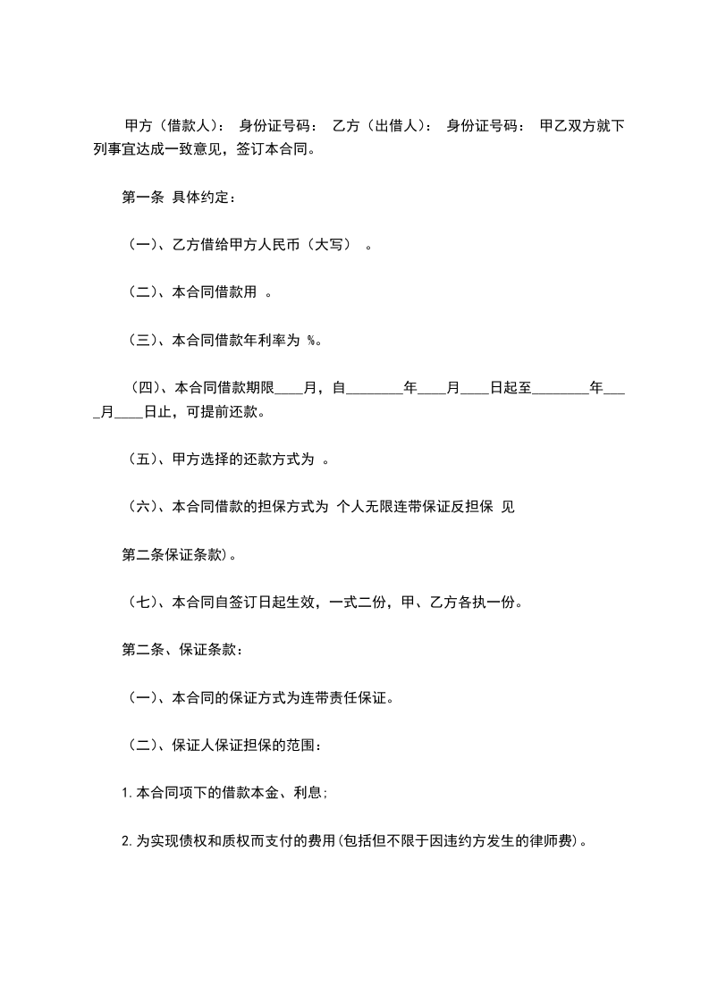 (六)、本合同借款的担保方式为 个人无限连带保证反担保 见