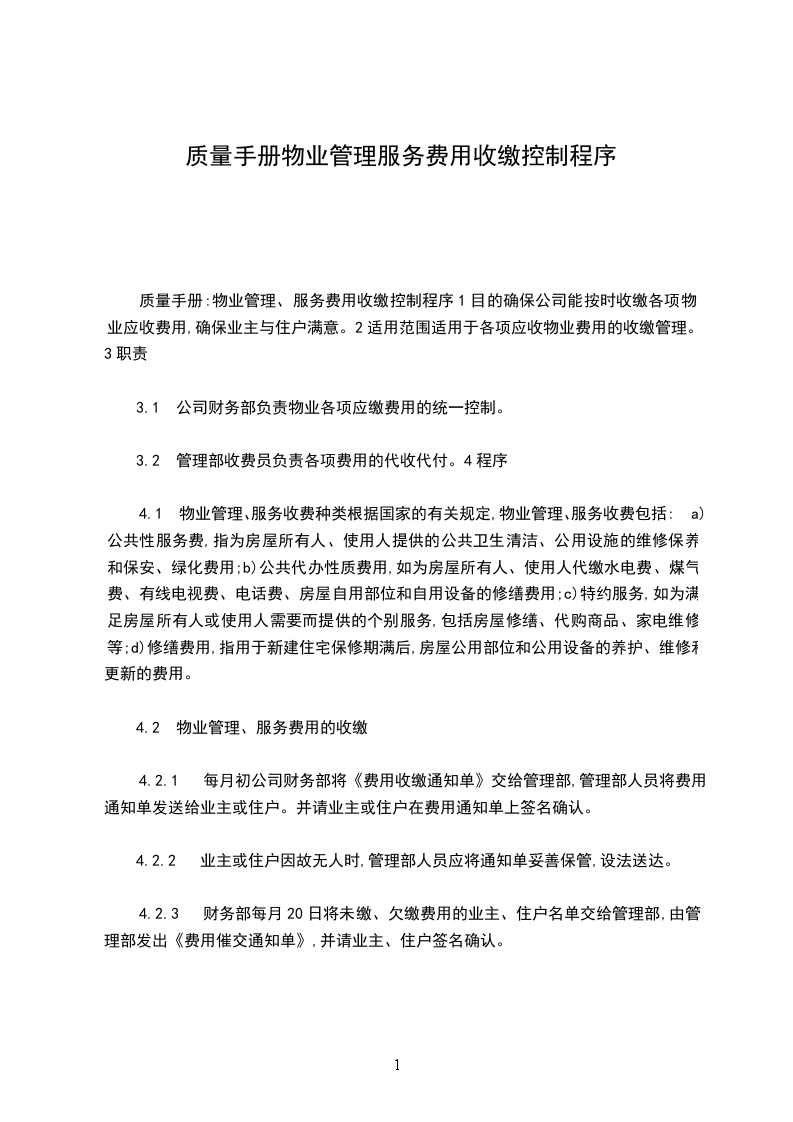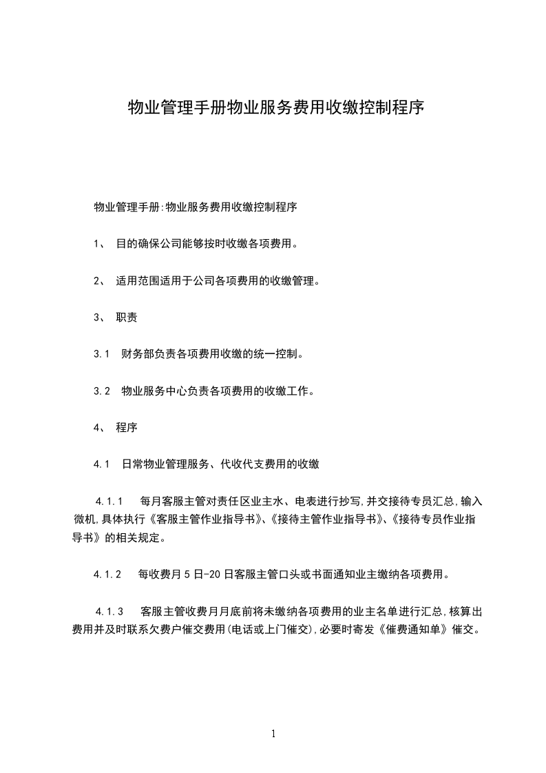 4.1.2 每收费月5日-20日客服主管口头或书面通知业主缴纳各项费用。