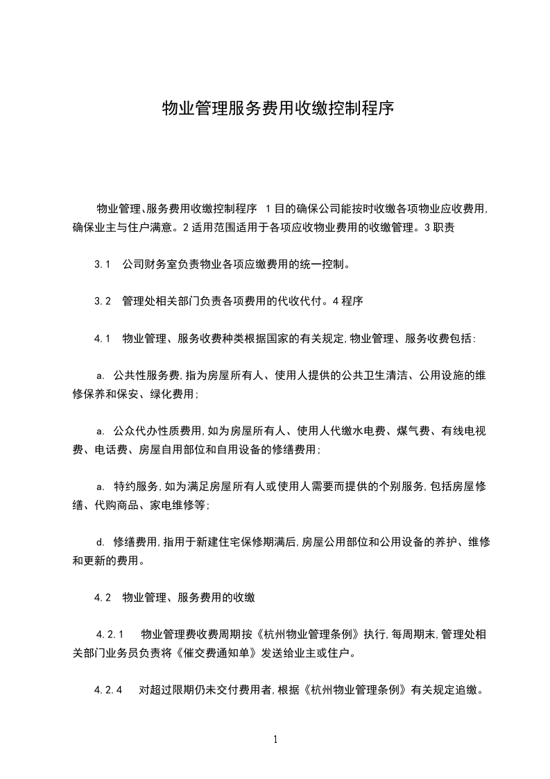 4.2 特约服务费用收缴公司制定收费标准模板,各服务中心根据当地的情况,制定本小区的特约服务收费标准向业主公布,本着便民、微利原则,确保服务质量。