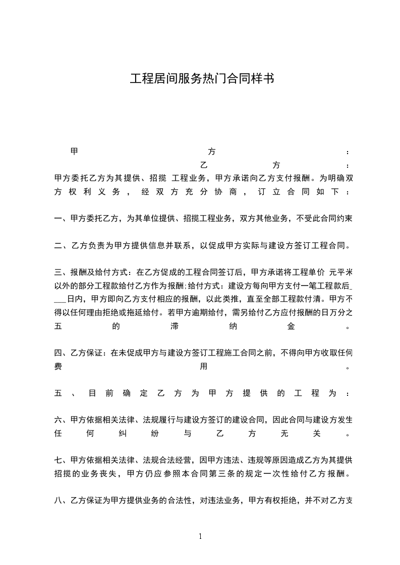 一、甲方委托乙方,为其单位提供、招揽工程业务,双方其他业务,不受此合同约束。