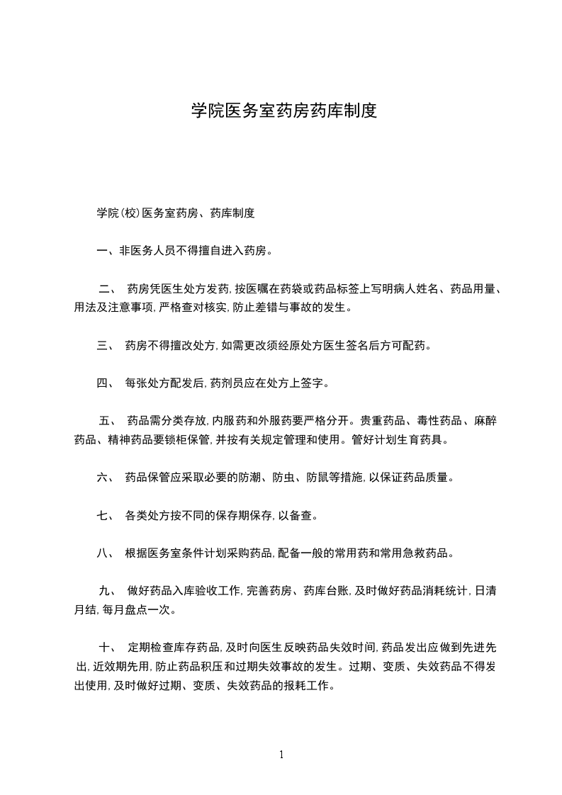学院(校)医务室药房、药库制度