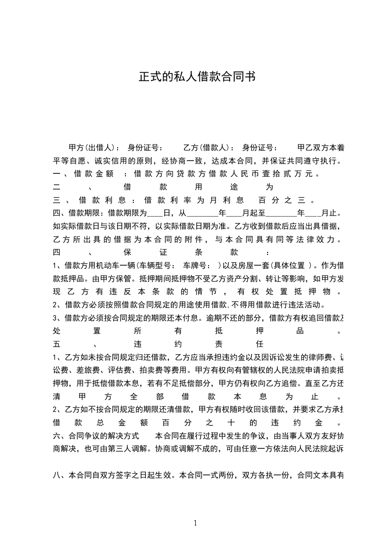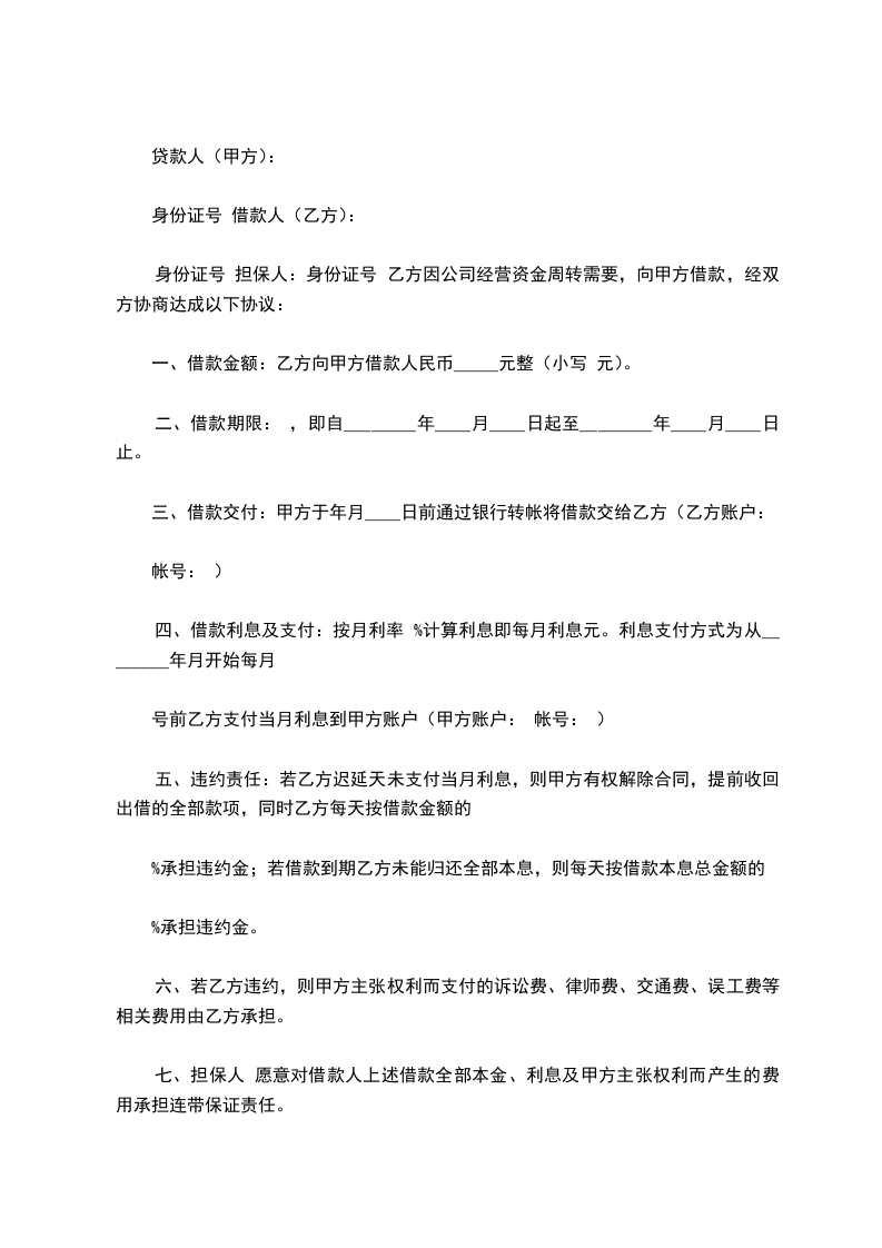 第一条 借款金额 甲方借款金额为人民币(大写)____________________.