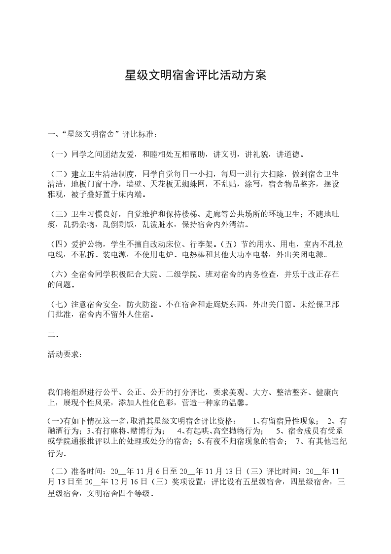 1、 星级文明宿舍评比得分为“校风建设先进班”评比活动中的“宿舍管理”项得分。
