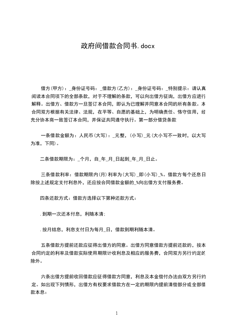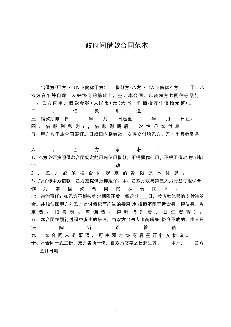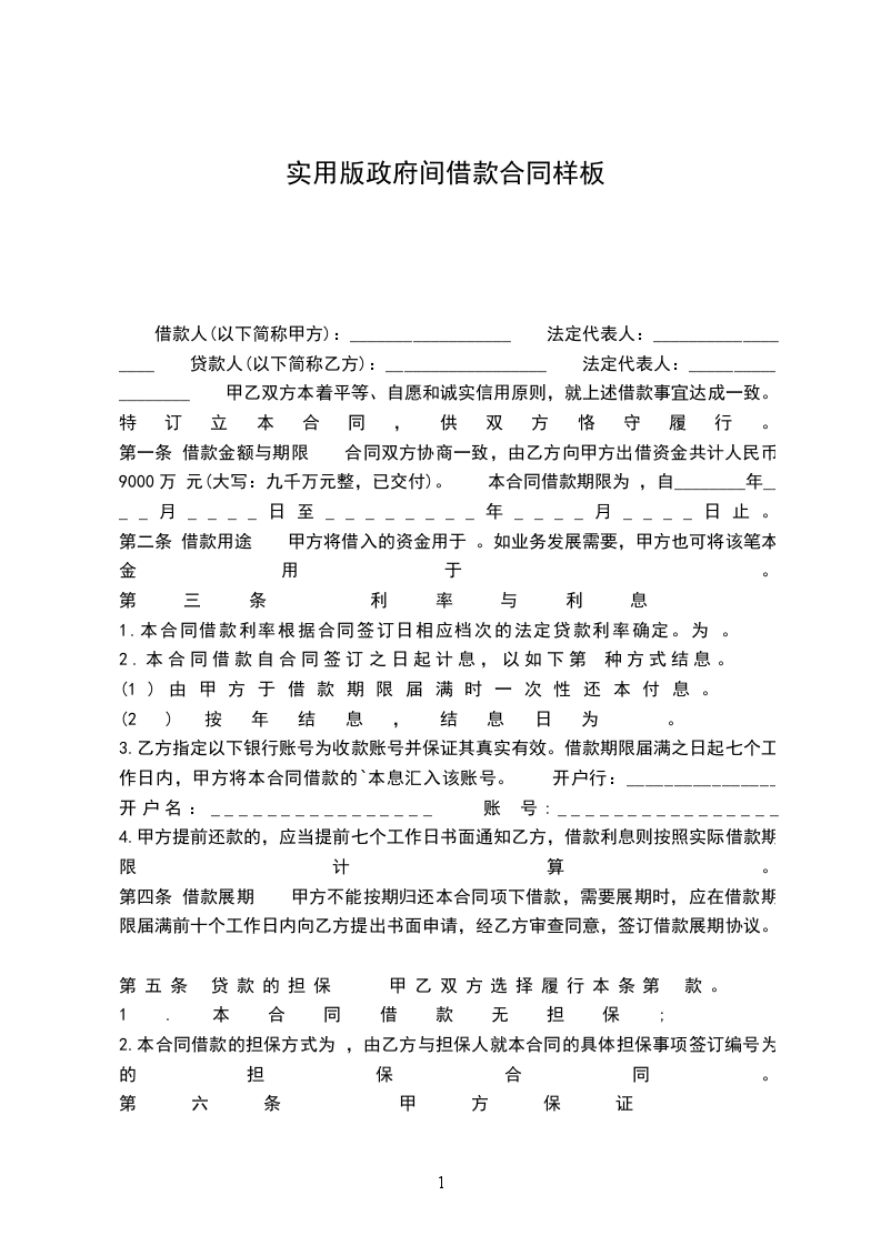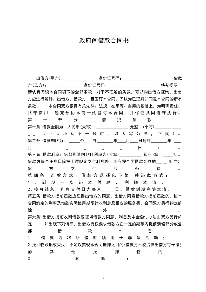 二、借款金额 借款方向贷款方借款人民币__________元。