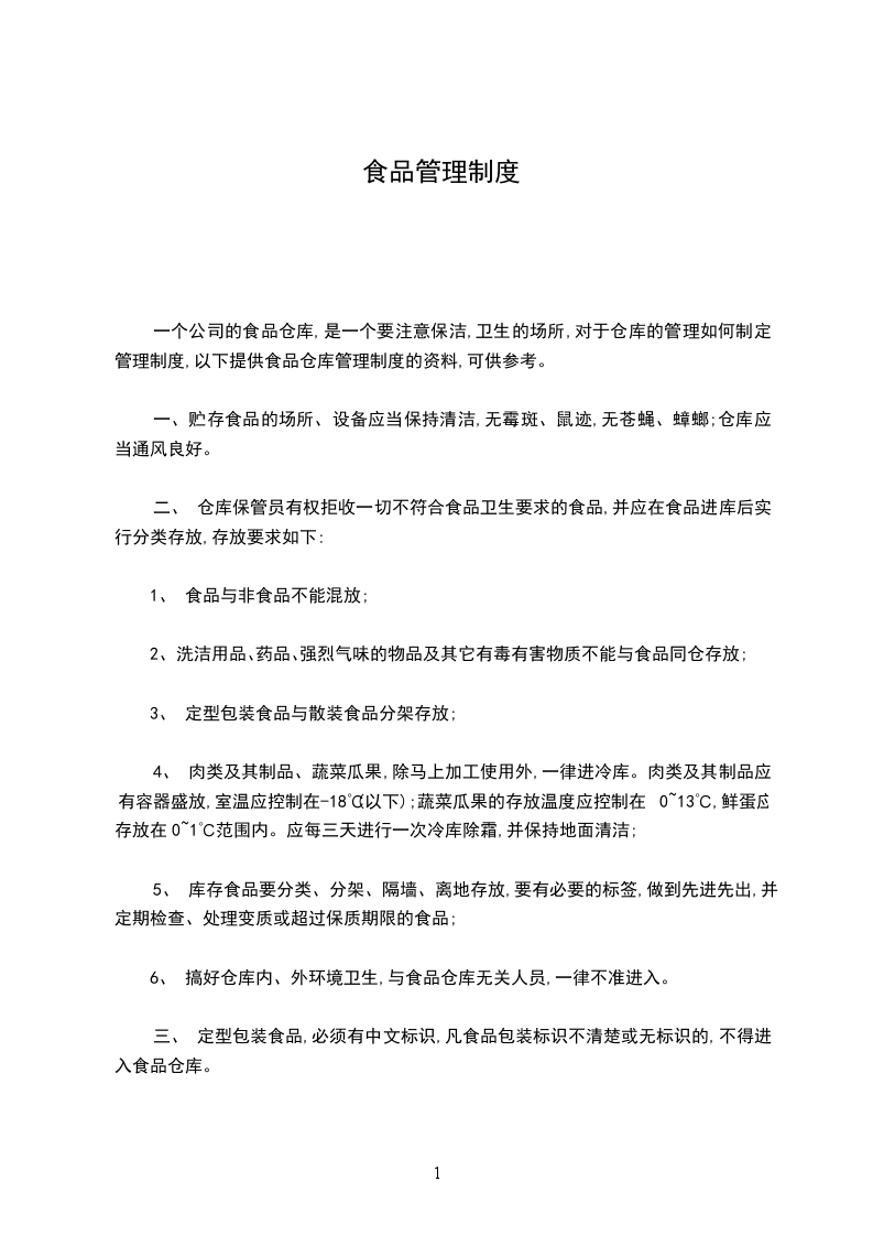 一个公司的食品仓库,是一个要注意保洁,卫生的场所,对于仓库的管理如何制定管理制度,以下提供食品仓库管理制度的资料,可供参考。