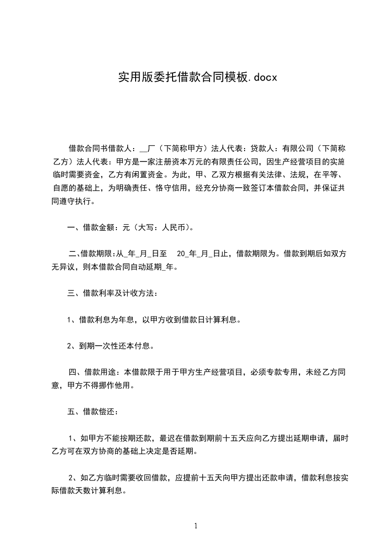 1. 甲方承诺按时足额提供借款资金。