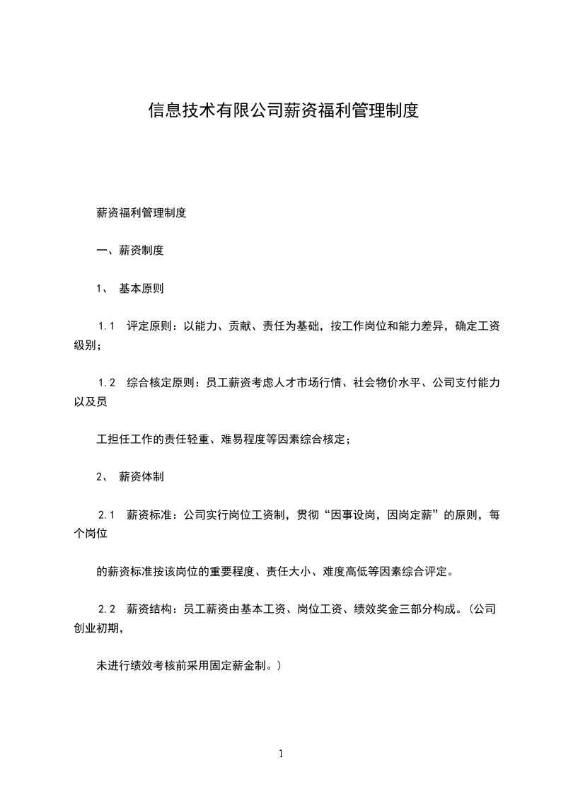 2.1 薪资标准:公司实行岗位工资制,贯彻“因事设岗,因岗定薪”的原则,每个岗位