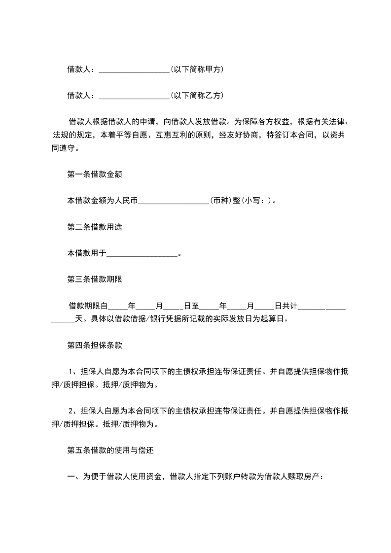 第二条 借款金额 借款方向贷款方借款人民币 万元。于________年____月____日前交付甲方提供的银行账户,开户银行账号 。