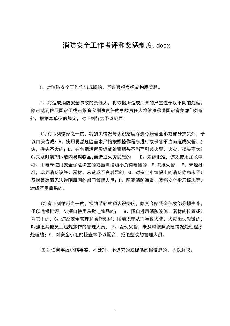 2、 考核消防知识不合格者或组织消防培训无故不参加者。