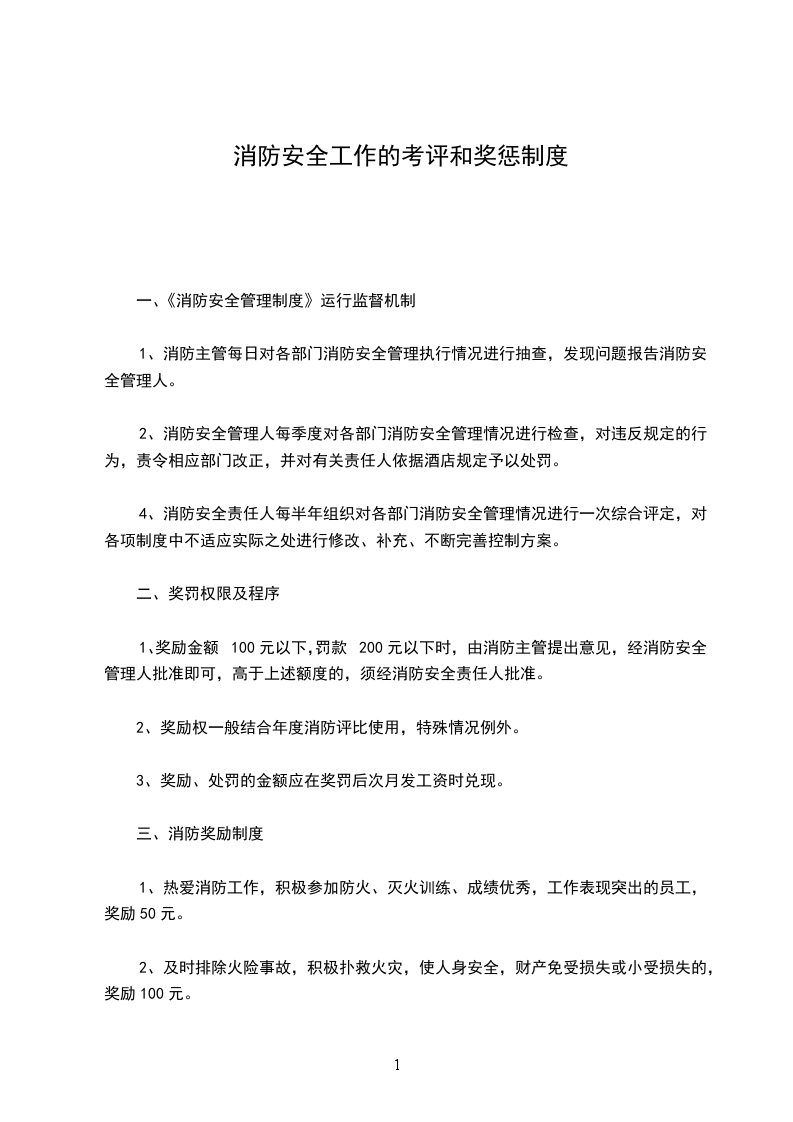 2、 消防安全管理人每季度对各部门消防安全管理情况进行检查,对违反规定的行为,责令相应部门改正,并对有关责任人依据酒店规定予以处罚。