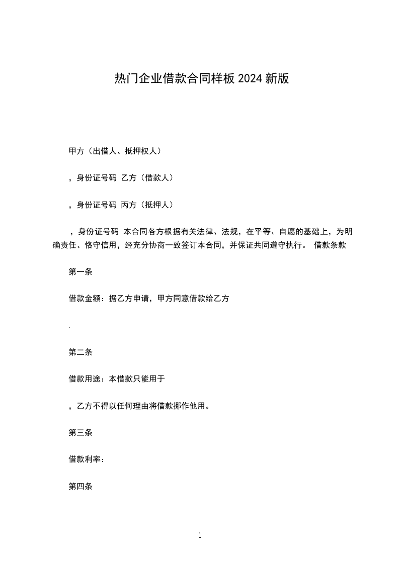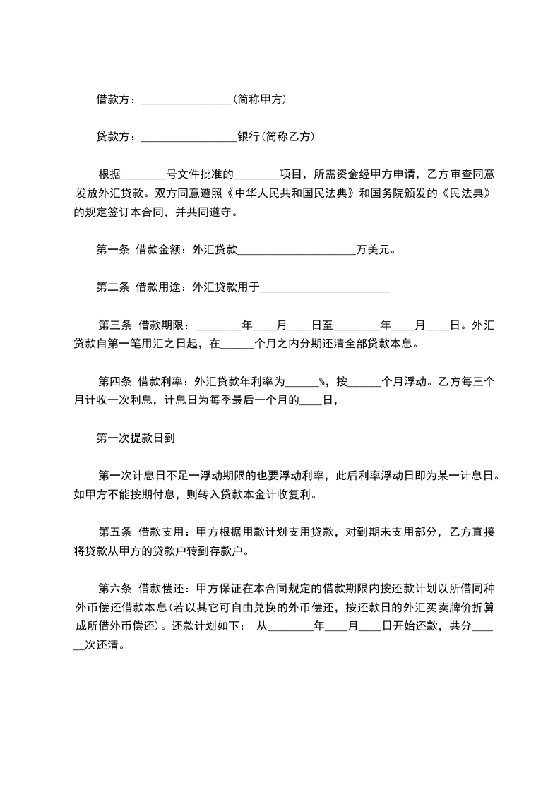 第一条 借款金额: 外汇贷款_____________________万美元。