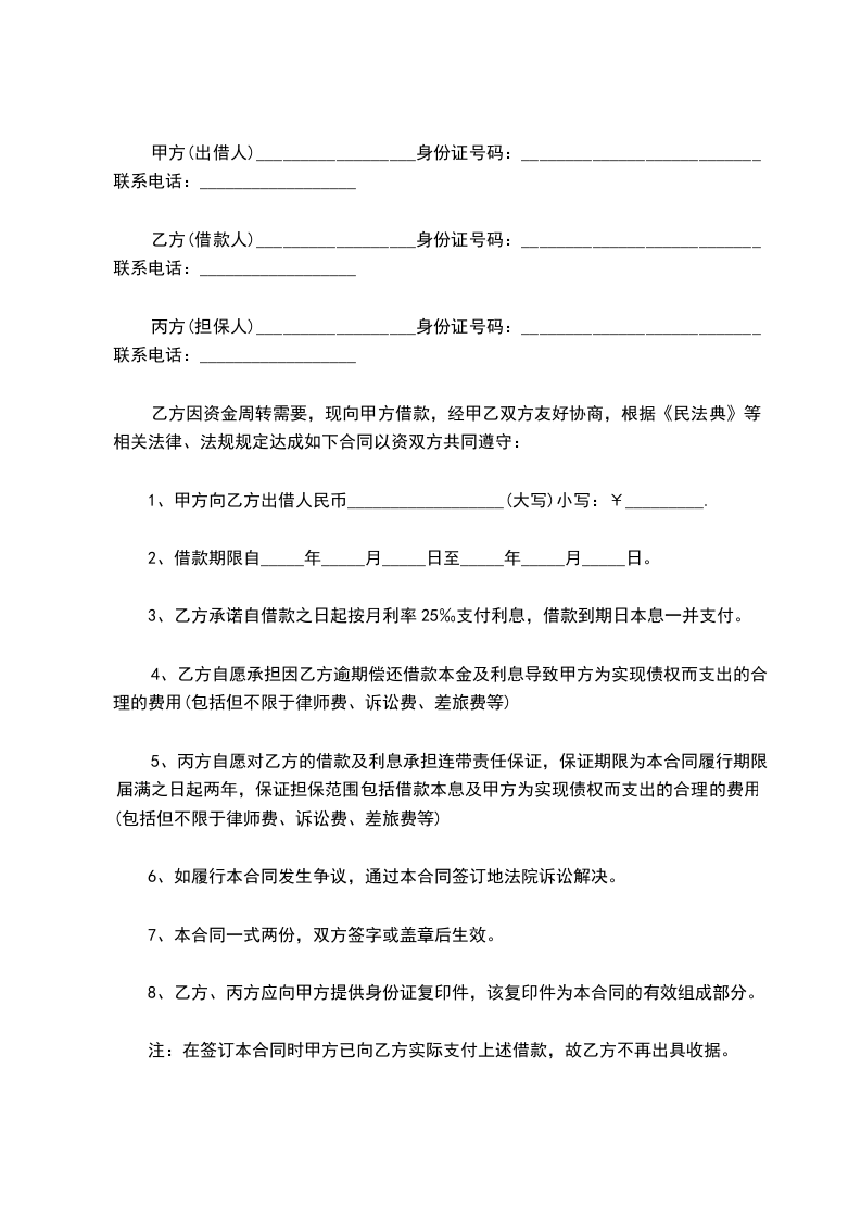 2、如乙方临时需要收回借款,应提前十五天向甲方提出还款申请,借款利息按实际借款天数计算利息。