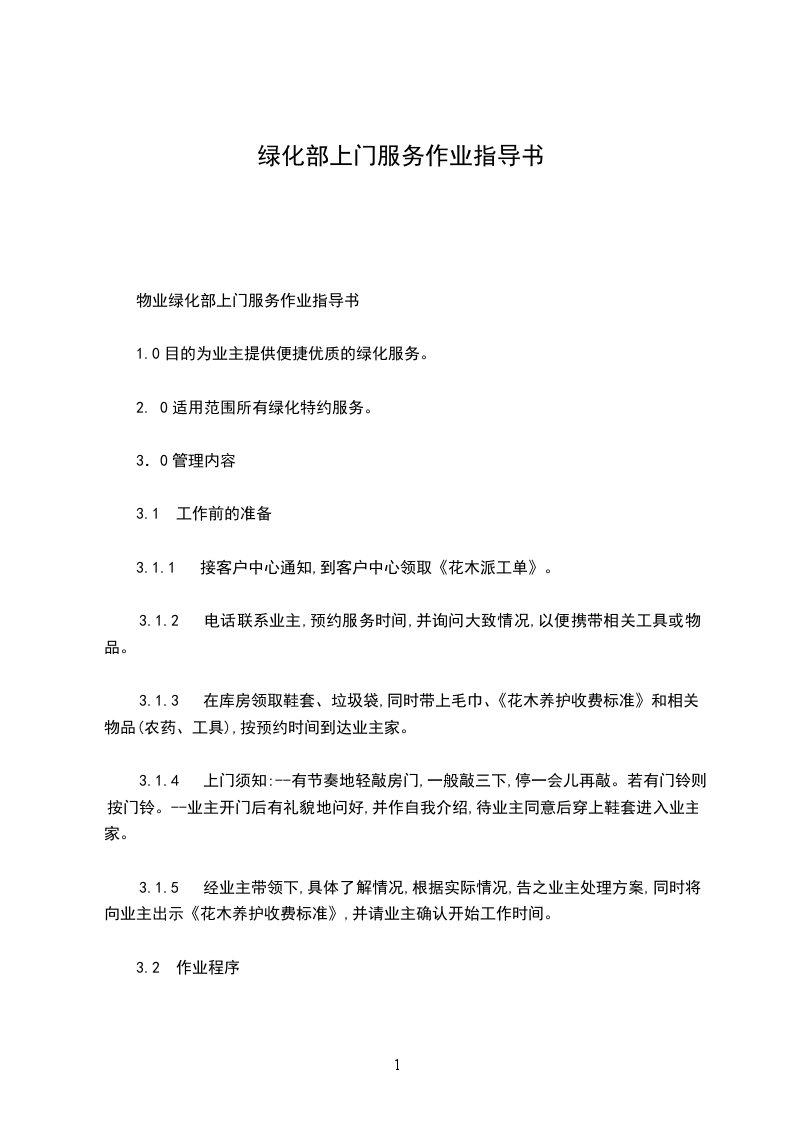 物业绿化部上门服务作业指导书