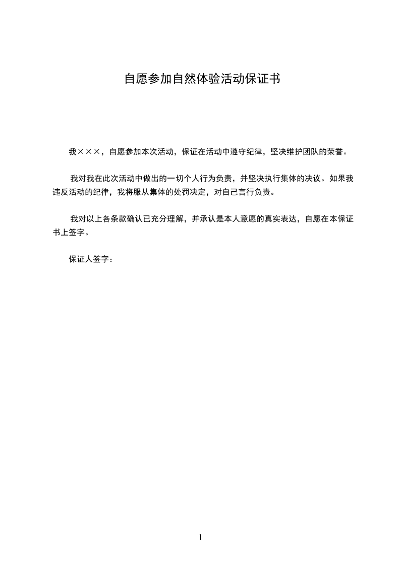 我×××,自愿参加本次活动,保证在活动中遵守纪律,坚决维护团队的荣誉。