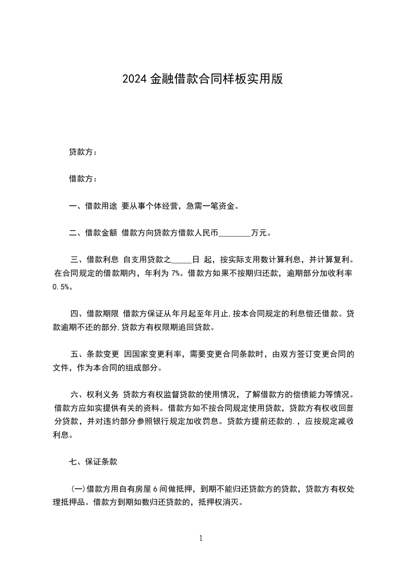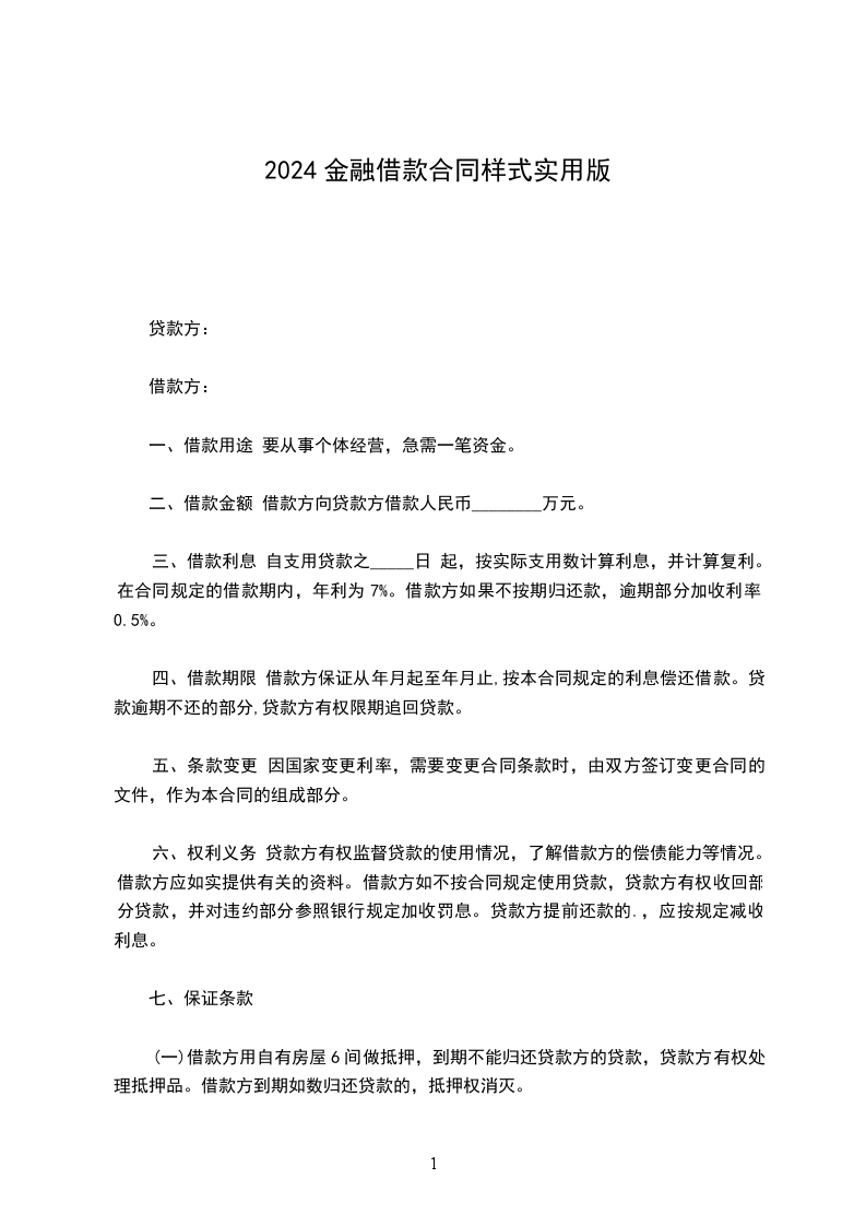 第四条 贷款利率 贷款利率按签订本合同时公布的利率确定年利率为___%(月利率___%)。在借款期限内利率变更,按中国人民银行规定办理。