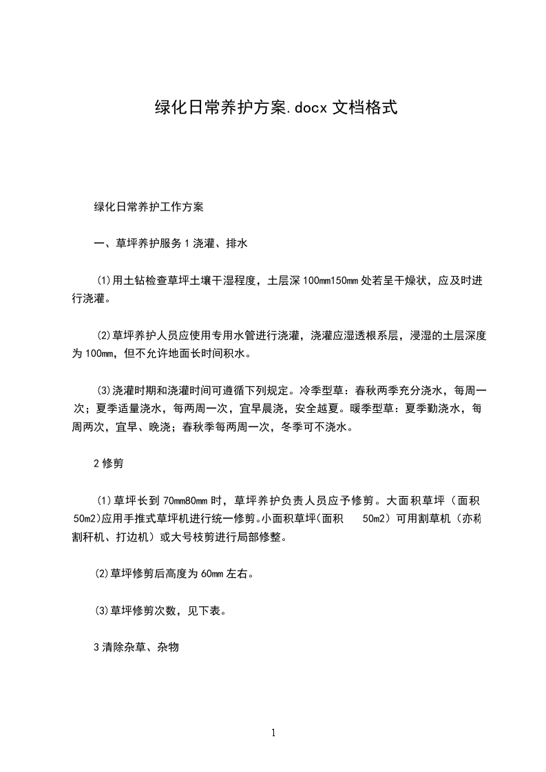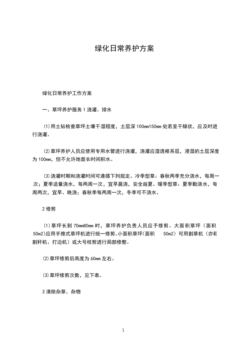 小区绿化部日常养护作业指导书