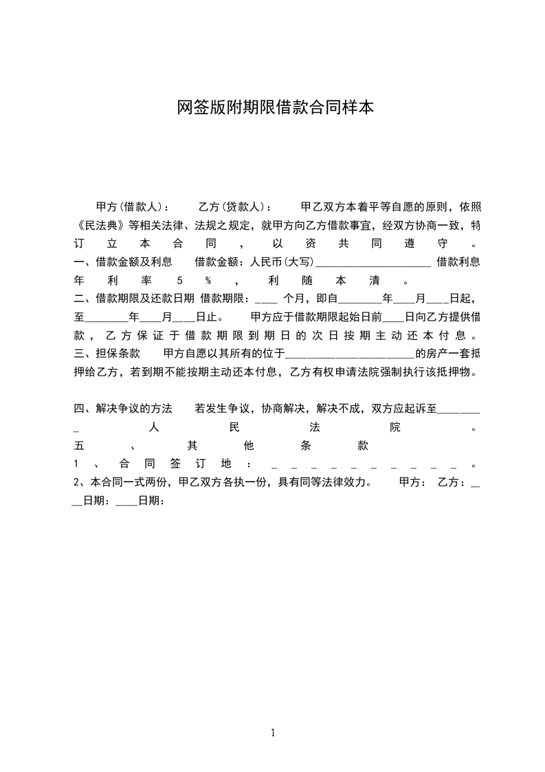 一、借款金额及利息 借款金额:人民币(大写)_____________________ 借款利息:年利率5%,利随本清。