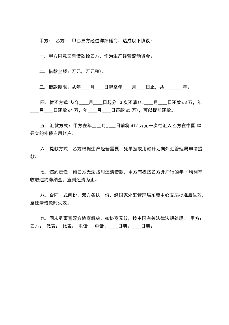 一. 甲方同意无息借款给乙方,作为生产经营流动资金。