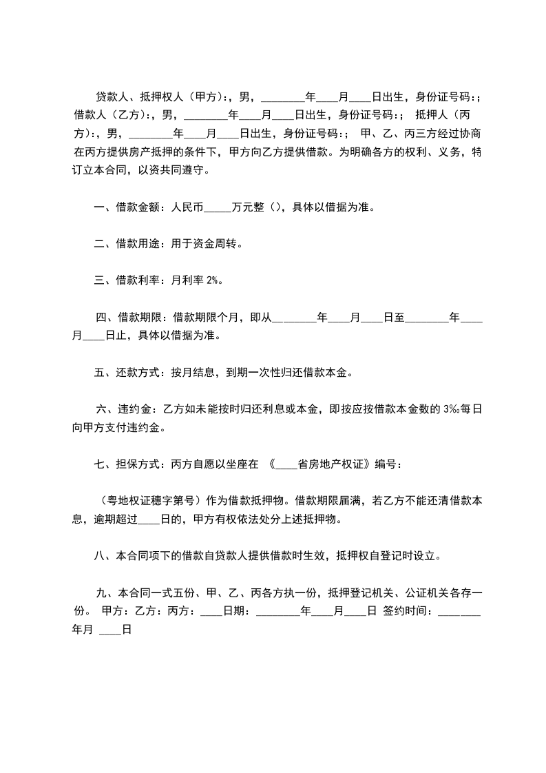 三、借款利息:借款利率为月利息 %,按月收息,利随本清。
