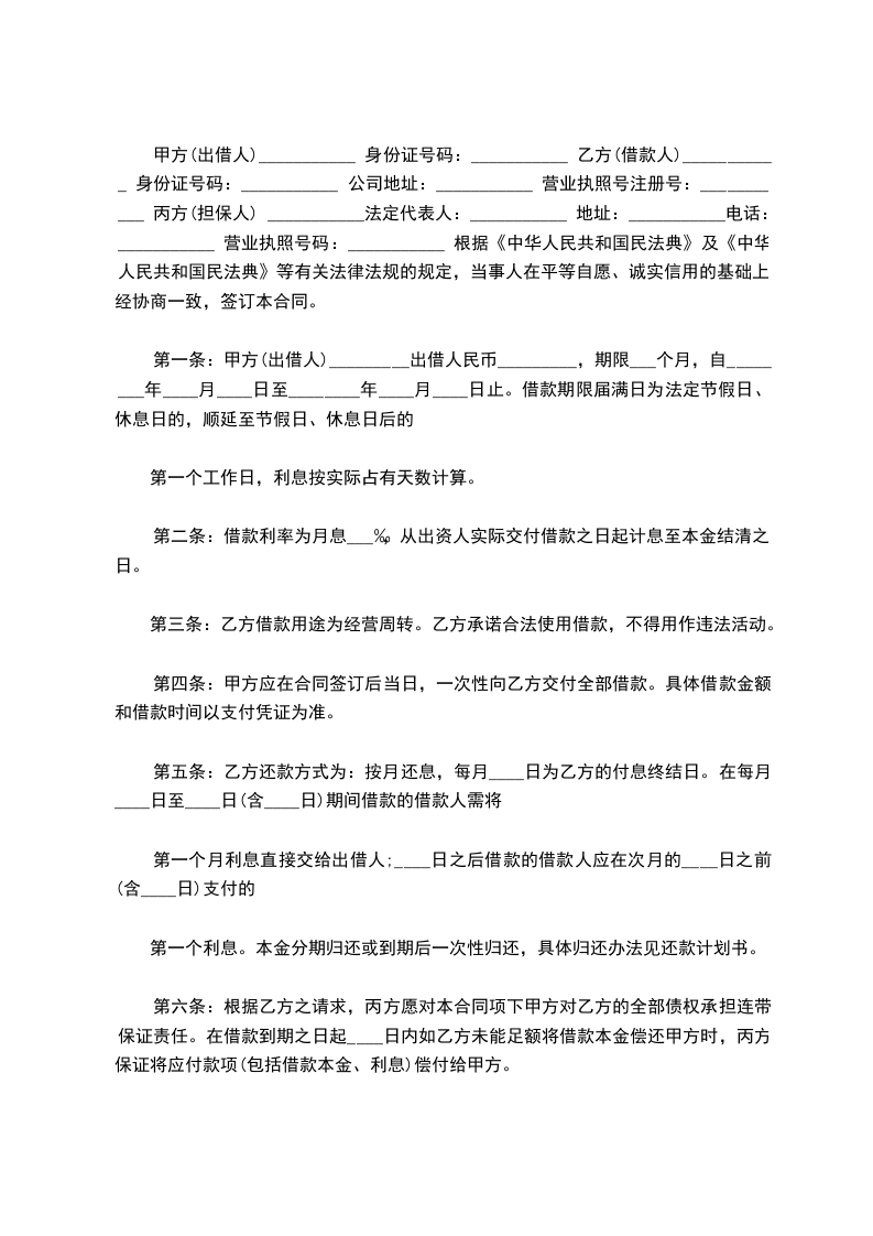 甲方(出借人): ________ 住所: ______ 乙方(借款人): _________ 住所: ___________________ 甲乙双方本着平等自愿、诚实信用的原则,经协商一致,达成本合同,并保证共同遵守执行。