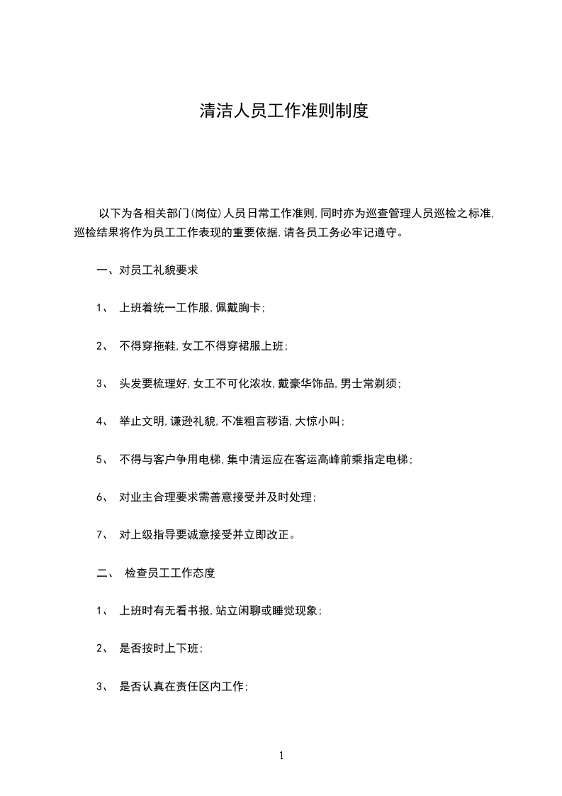 以下为各相关部门(岗位)人员日常工作准则,同时亦为巡查管理人员巡检之标准,巡检结果将作为员工工作表现的重要依据,请各员工务必牢记遵守。
