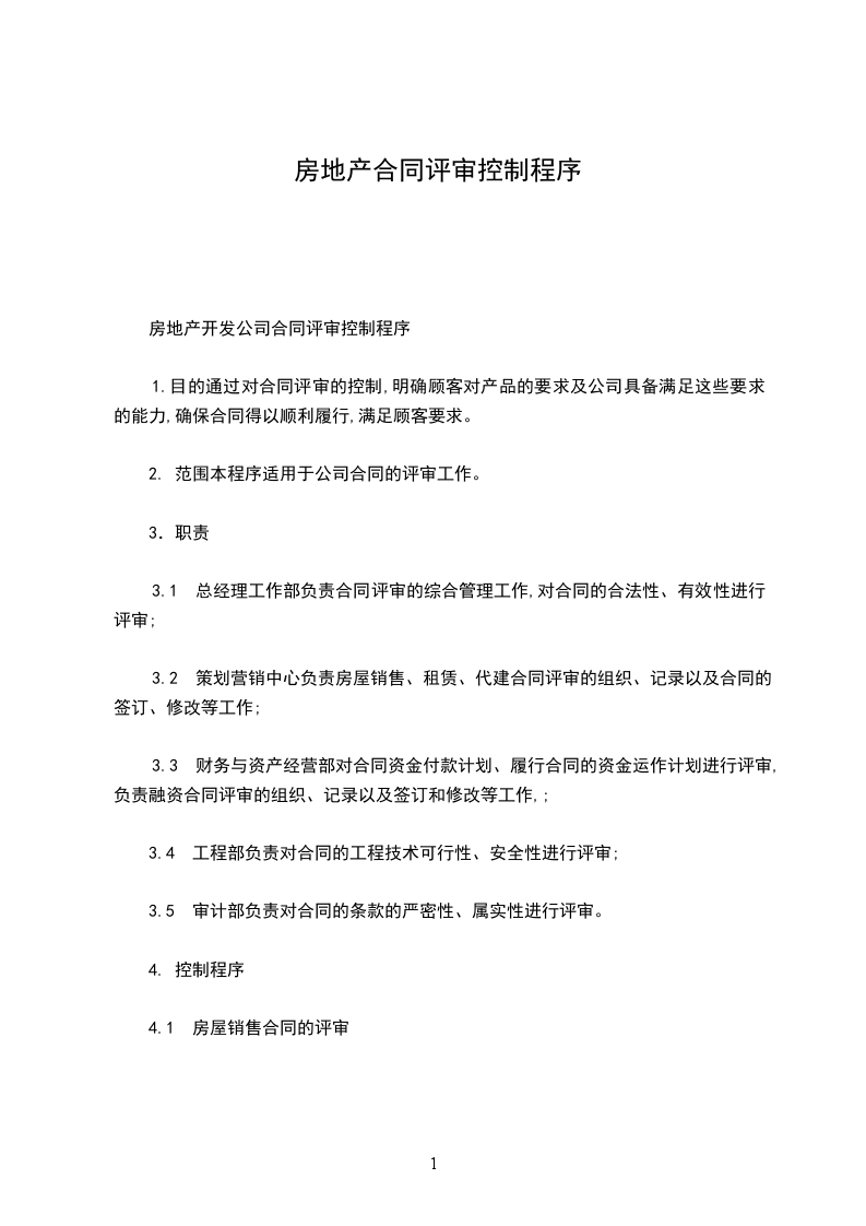 房地产开发公司合同评审控制程序
