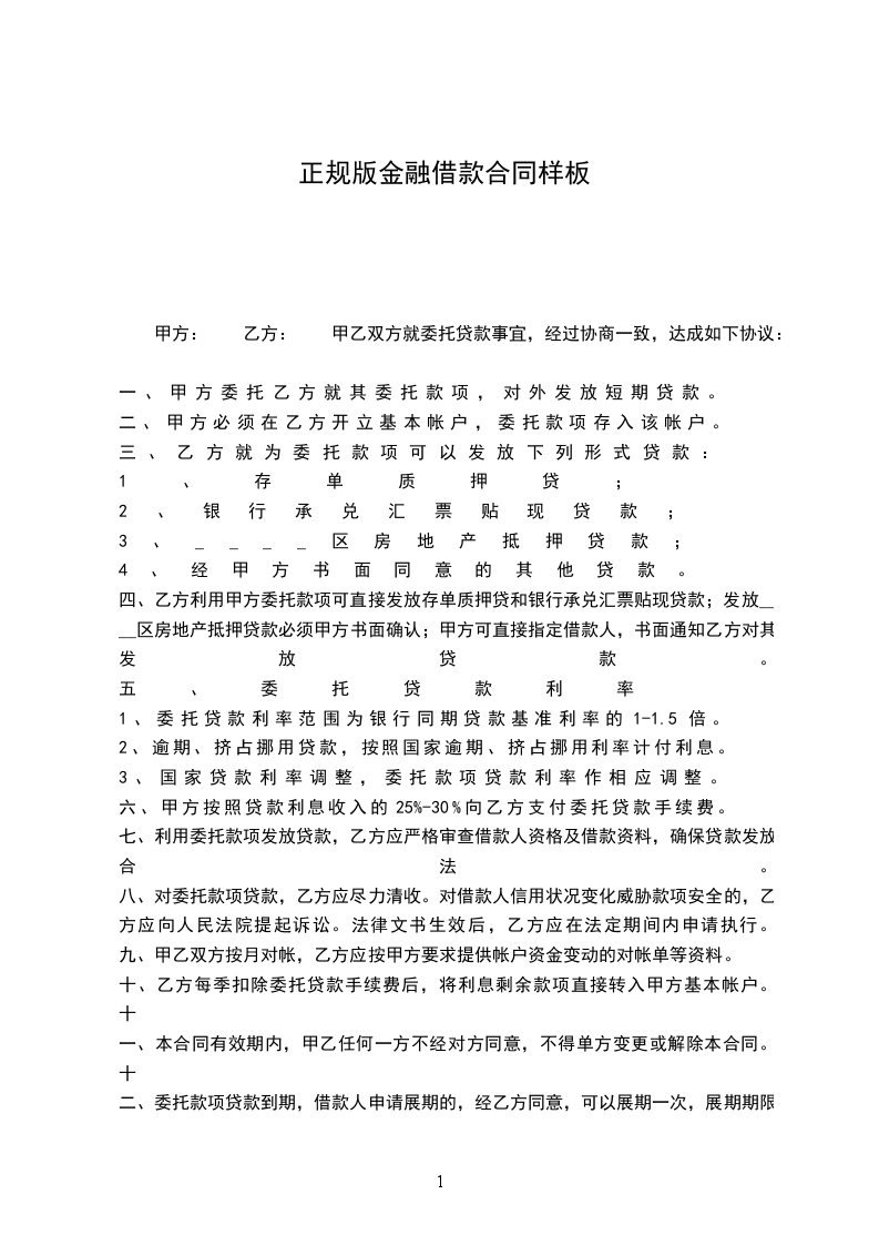 一、甲方委托乙方就其委托款项,对外发放短期。