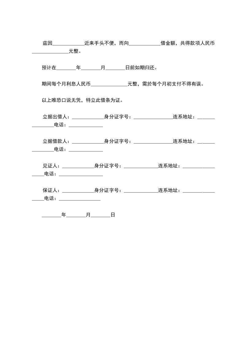 2.本合同借款的担保方式为 ,由乙方与担保人就本合同的具体担保事项签订编号为 的担保合同。