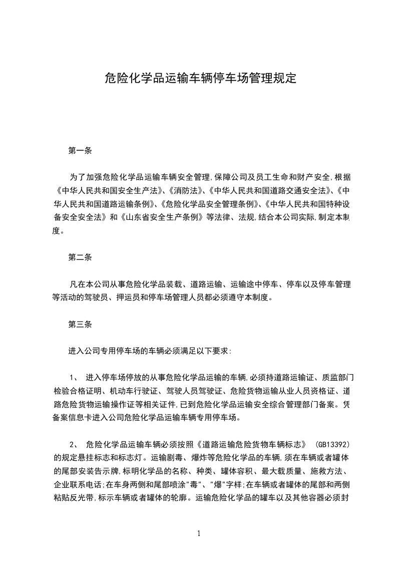 1、 进入停车场停放的从事危险化学品运输的车辆,必须持道路运输证、质监部门检验合格证明、机动车行驶证、驾驶人员驾驶证、危险货物运输从业人员资格证、道路危险货物运输操作证等相关证件,已到危险化学品运输安全综合管理部门备案。凭备案信息卡进入公司危险化学品运输车辆专用停车场。
