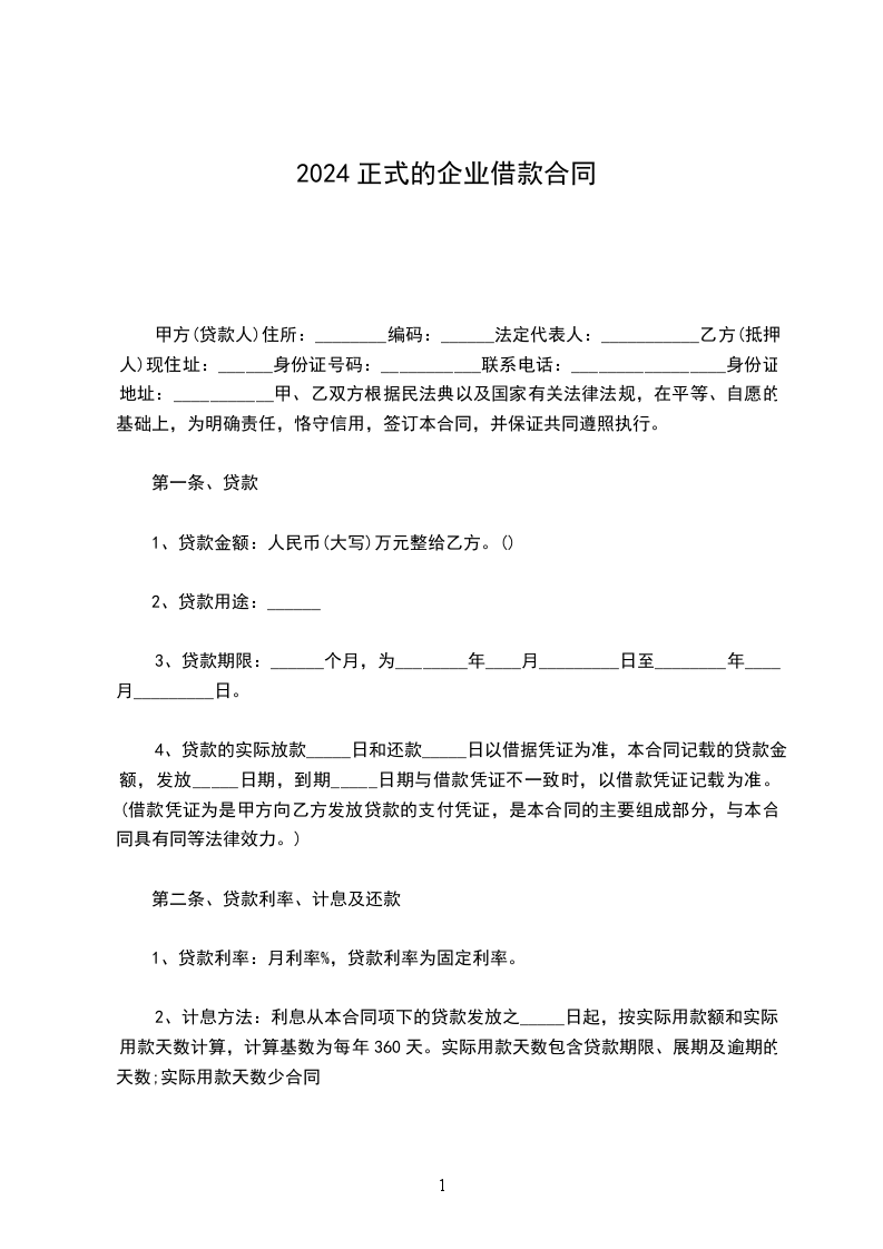 1、本合同项下的贷款利率按中国人民银行________年期贷款利率的四倍计算。