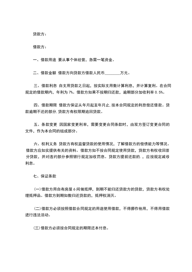 (一)借款方用自有房屋6间做抵押,到期不能归还贷款方的贷款,贷款方有权处理抵押品。借款方到期如数归还贷款的,抵押权消灭。