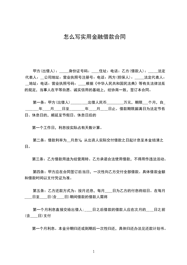 一、乙方贷给甲方人民币(大写)_____________________,于_____________________前交付甲方。