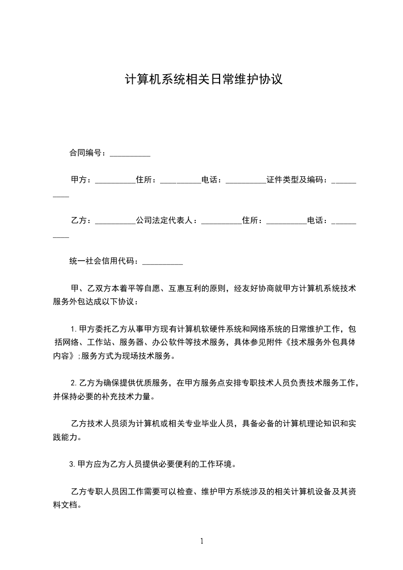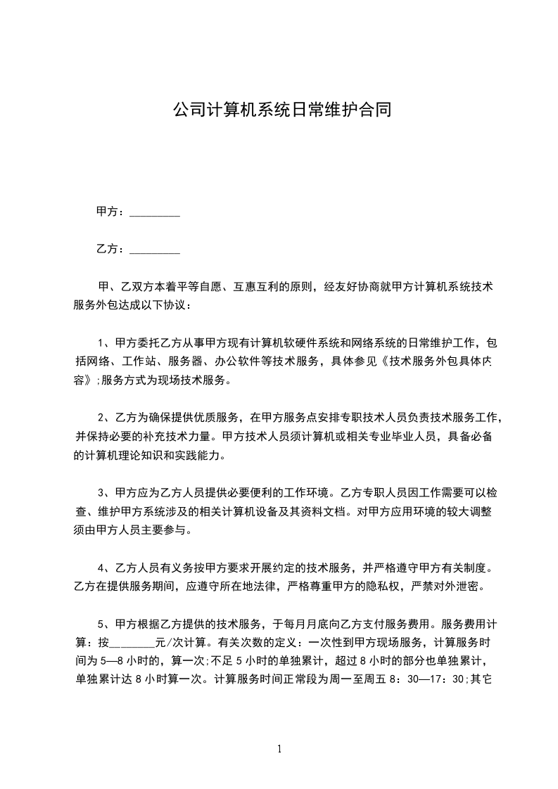 甲、乙双方本着平等自愿、互惠互利的原则,经友好协商就甲方计算机系统技术服务外包达成以下协议: