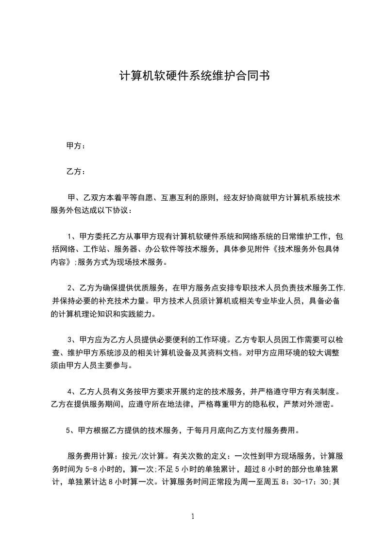 1.甲方委托乙方从事甲方现有计算机软硬件系统和网络系统的日常维护工作,包括网络、工作站、服务器、办公软件等技术服务,具体参见附件《技术服务外包具体内容》;服务方式为现场技术服务。