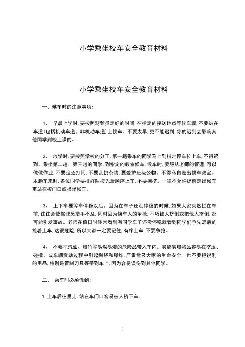 小学乘坐校车安全教育材料