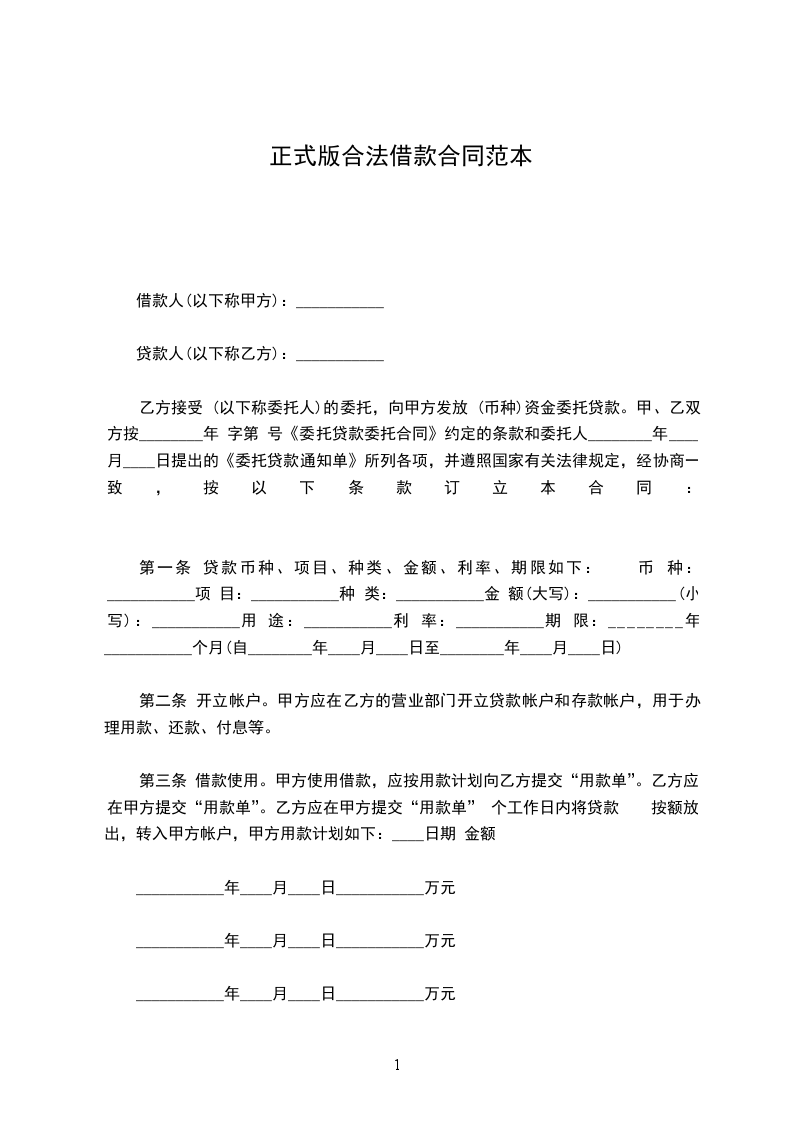 第一条 贷款币种、项目、种类、金额、利率、期限如下: 币 种:___________项 目:___________种 类:___________金 额(大写):___________(小写):___________用 途:___________利 率:___________期 限:________年___________个月(自________年____月____日至________年____月____日)