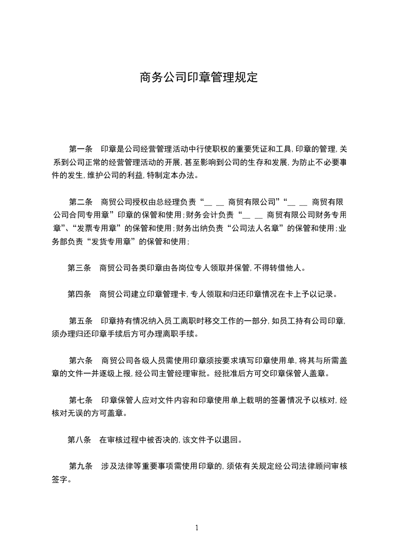 第四条 商贸公司建立印章管理卡,专人领取和归还印章情况在卡上予以记录。
