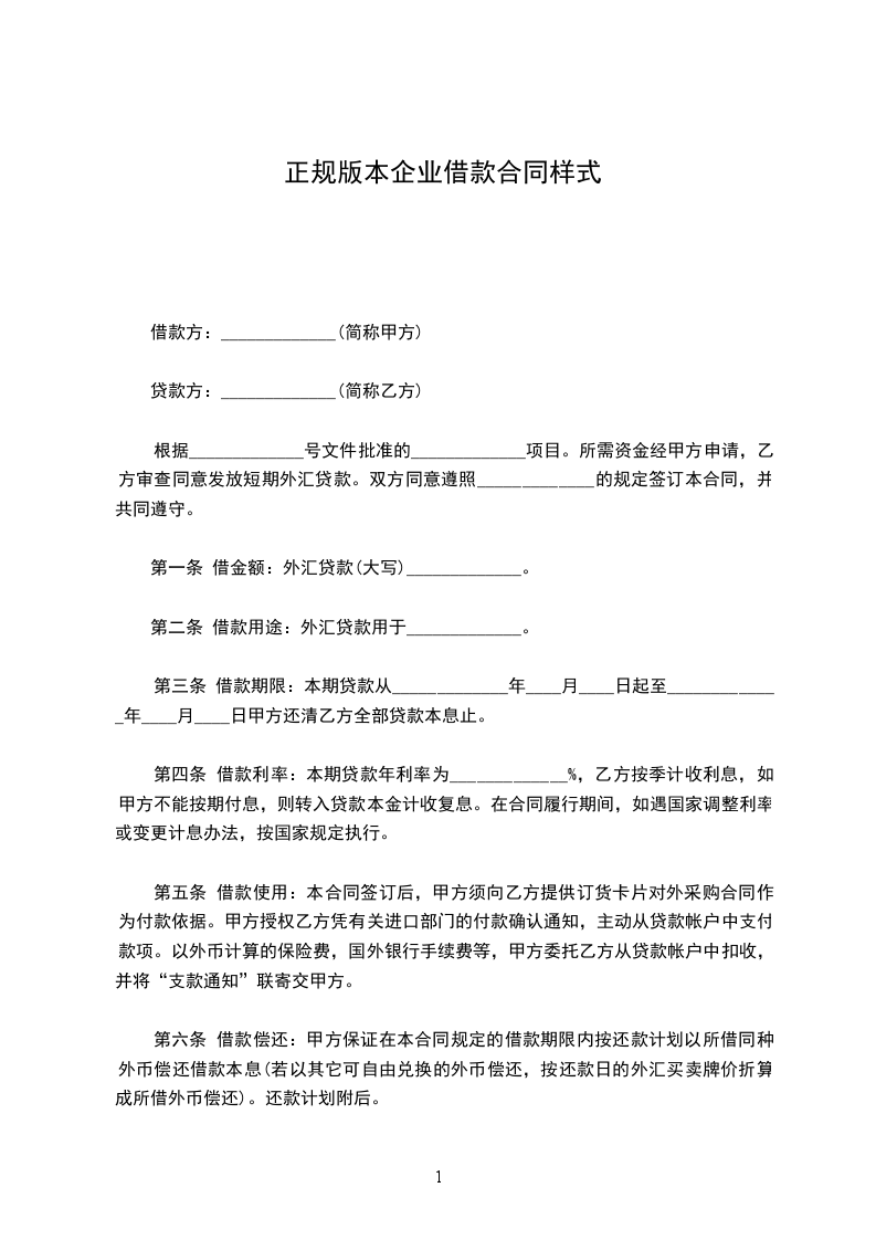 8、本协议一式二份,甲乙双方各执一份,经双方签字或盖章后生效。 甲方: 乙方: 时间: 时间:借款合同 篇10 合同编号:XXX_ 借款方:XXX_(简称甲方) 贷款方:XXX_(简称乙方) 根据XXX_号文件批准的XXX_项目。所需资金经甲方申请,乙方审查同意发放短期外汇贷款。双方同意遵照XXX_的规定签订本合同,并共同遵守。