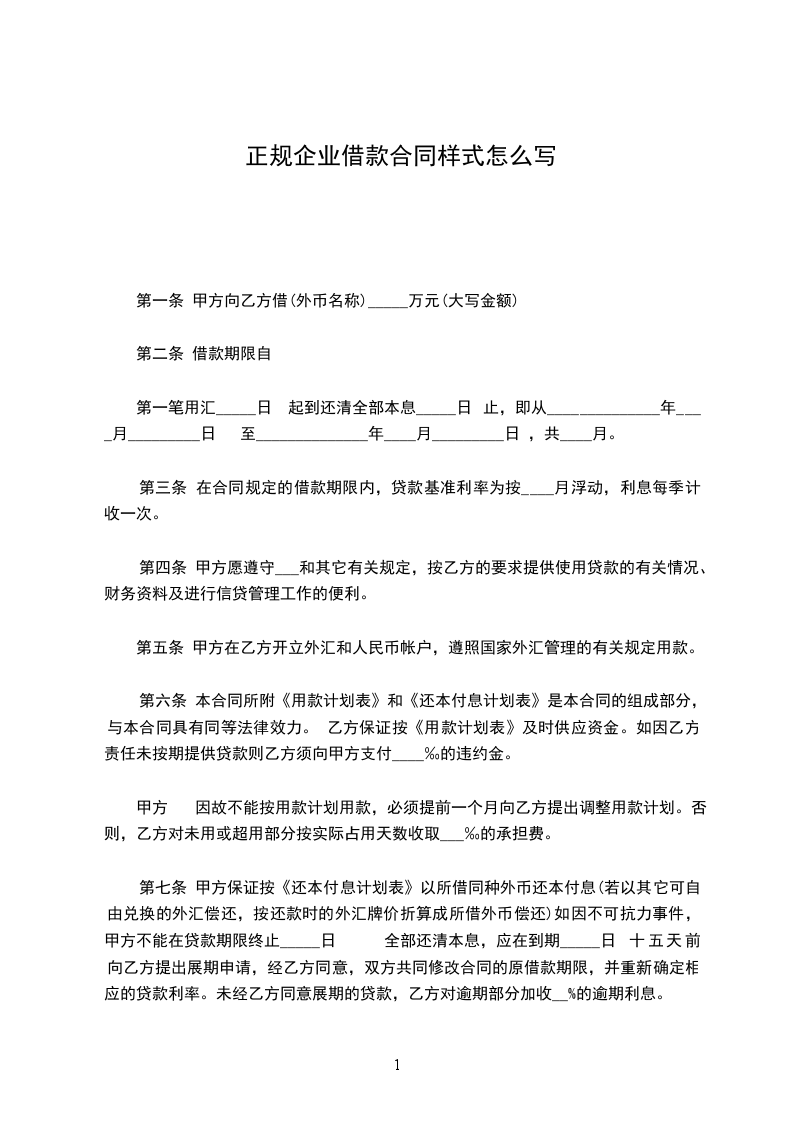 1、借款金额: 乙方向甲方借款金额为人民币 元。