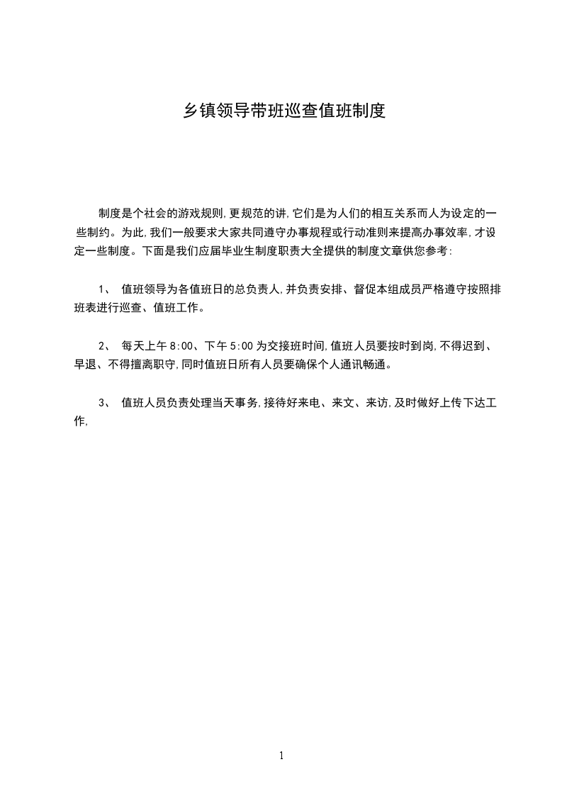 2、 每天上午8:00、下午5:00为交接班时间,值班人员要按时到岗,不得迟到、早退、不得擅离职守,同时值班日所有人员要确保个人通讯畅通。