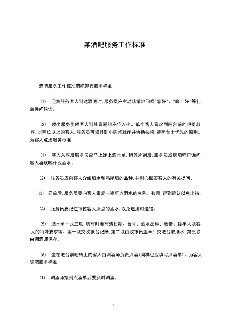 (2) 领坐服务引领客人到其喜爱的座位入坐。单个客人喜欢到吧台前的吧椅就座,对两位以上的客人,服务员可领其到小圆桌就座并协助拉椅,遵照女士优先的原则。为客人点酒服务标准