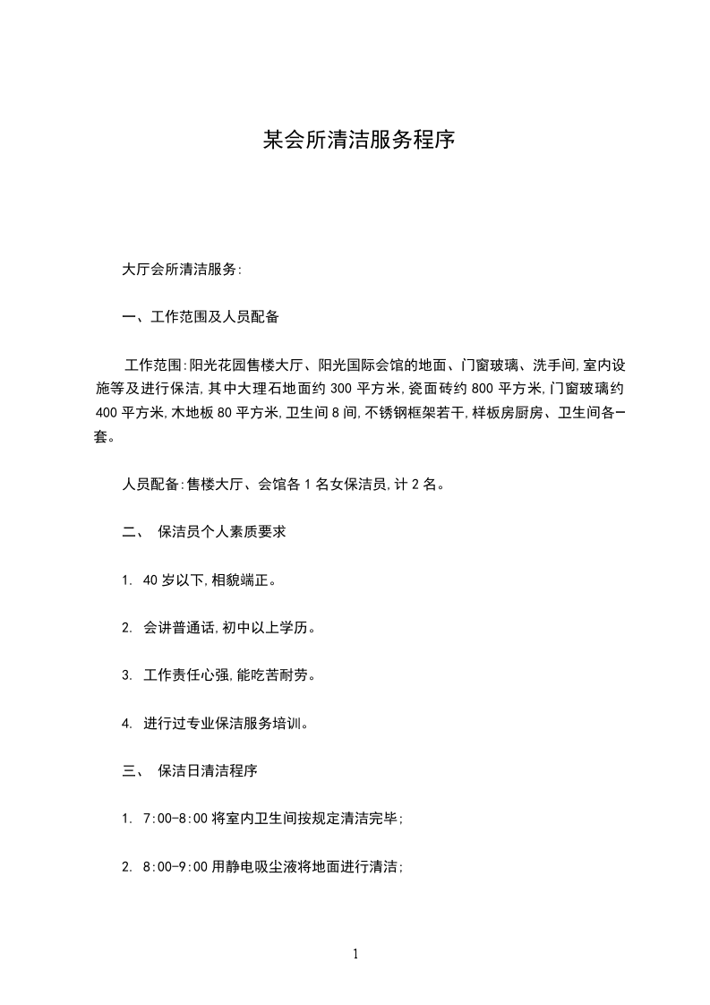 人员配备:售楼大厅、会馆各1名女保洁员,计2名。