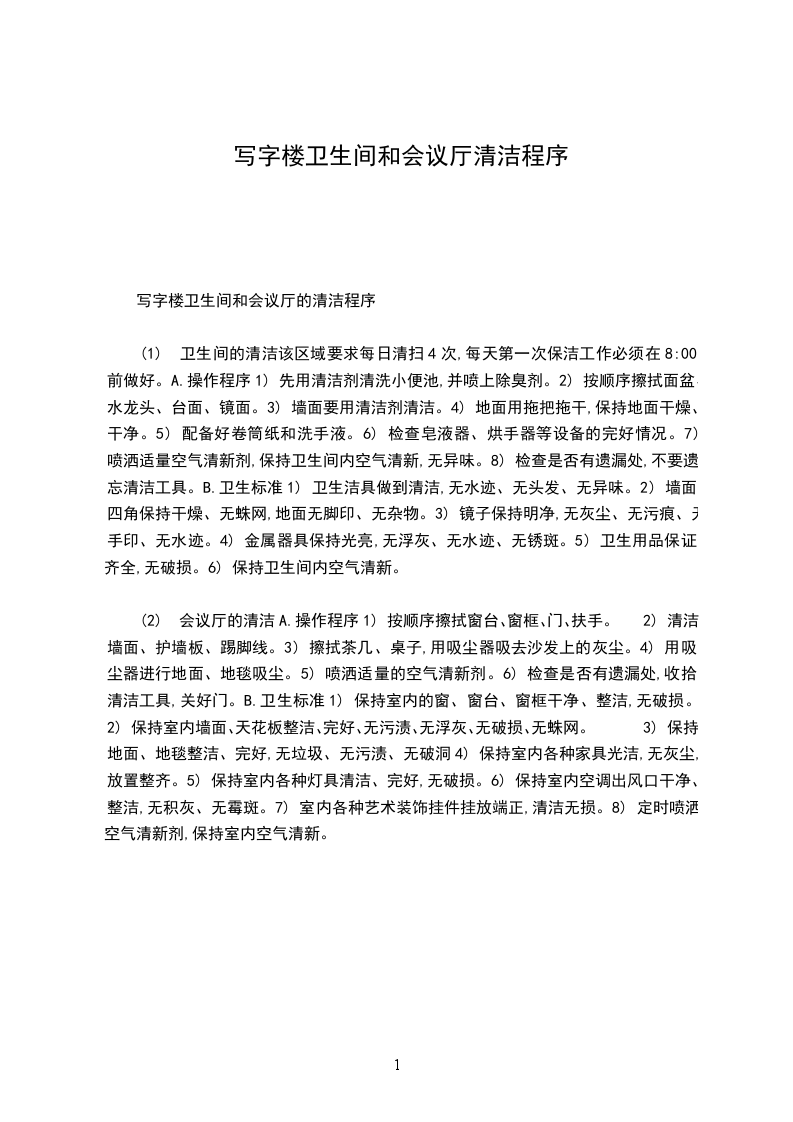 1. 7:00-8:00将室内卫生间按规定清洁完毕;