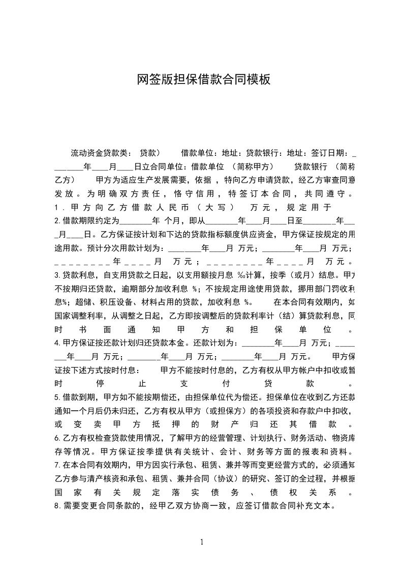 流动资金贷款类: 贷款) 借款单位:地址:贷款银行:地址:签订日期:________年____月____日立合同单位:借款单位 (简称甲方) 贷款银行 (简称乙方) 甲方为适应生产发展需要,依据 ,特向乙方申请贷款,经乙方审查同意发放。为明确双方责任,恪守信用,特签订本合同,共同遵守。
