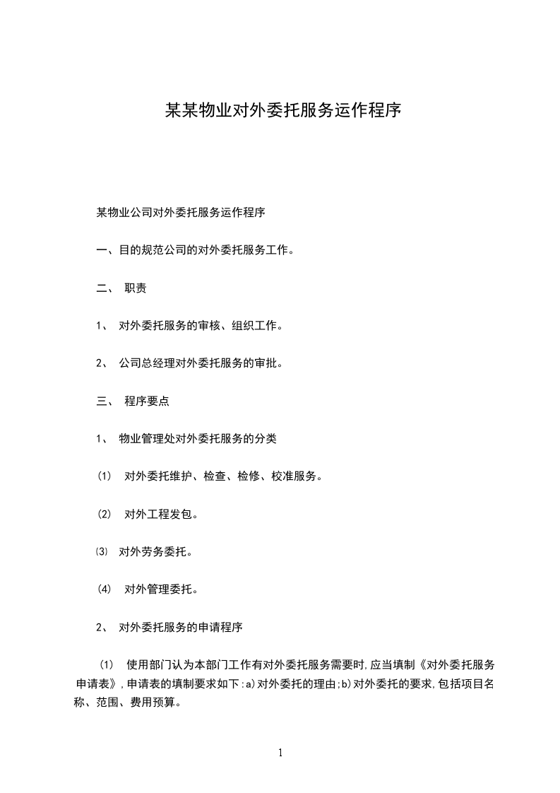 (1) 使用部门认为本部门工作有对外委托服务需要时,应当填制《对外委托服务申请表》,申请表的填制要求如下:a)对外委托的理由;b)对外委托的要求,包括项目名称、范围、费用预算。