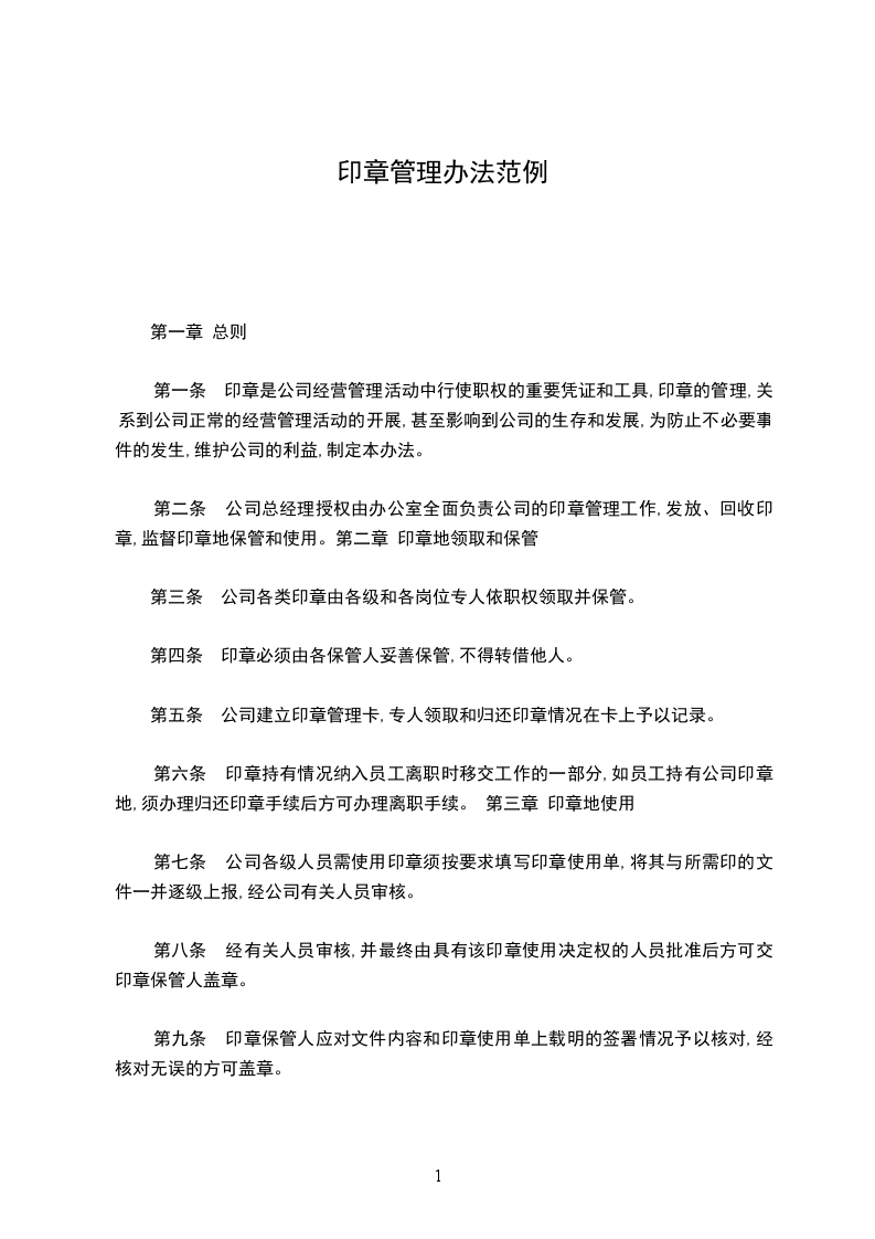 集团公司印章管理办法范本
