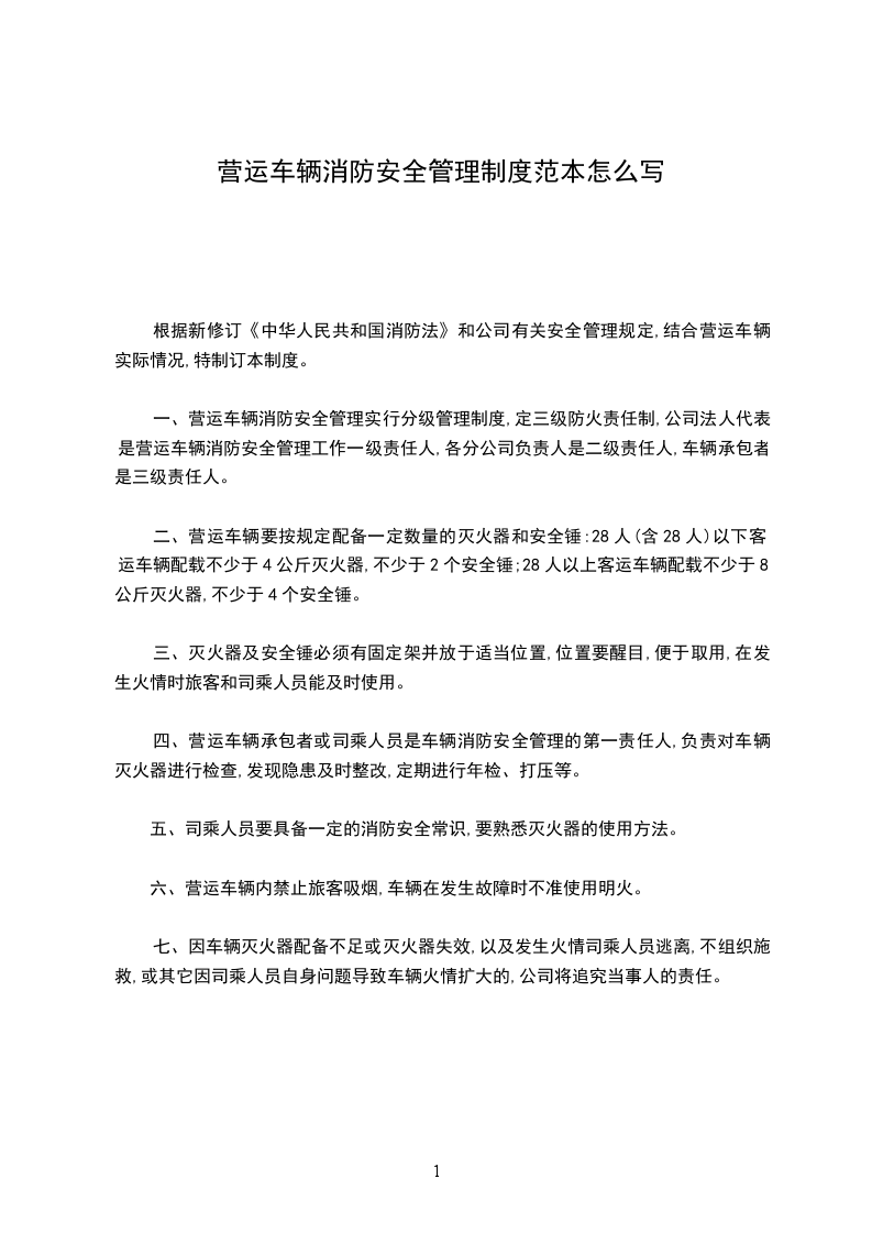 根据新修订《中华人民共和国消防法》和公司有关安全管理规定,结合营运车辆实际情况,特制订本制度。